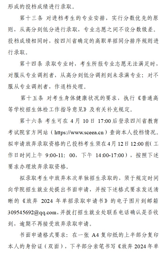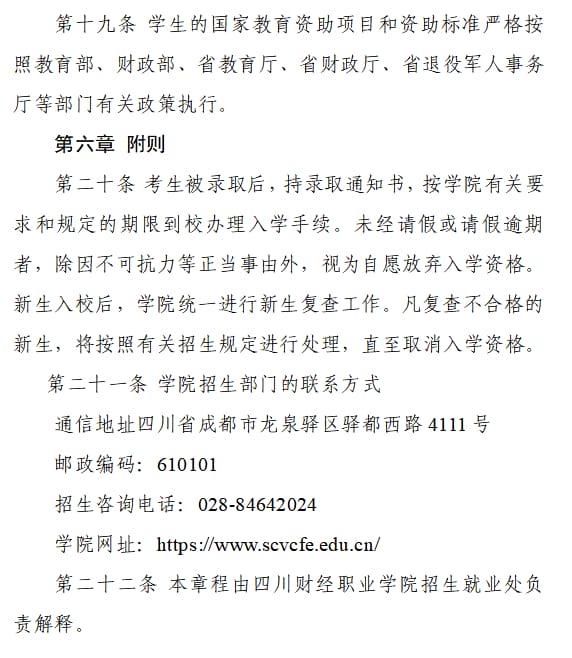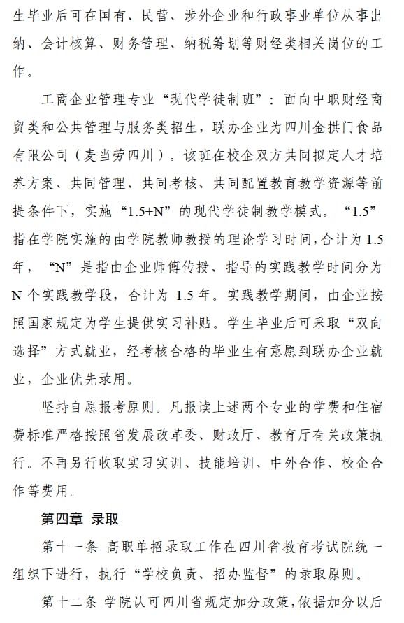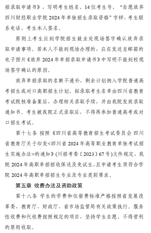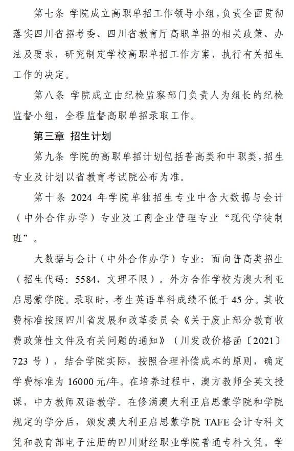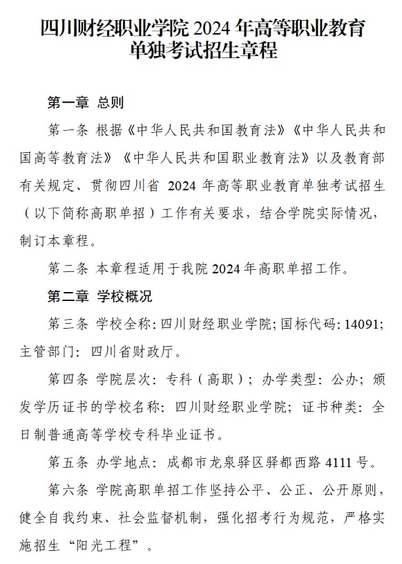 四川财经职业学院2024年单招章程